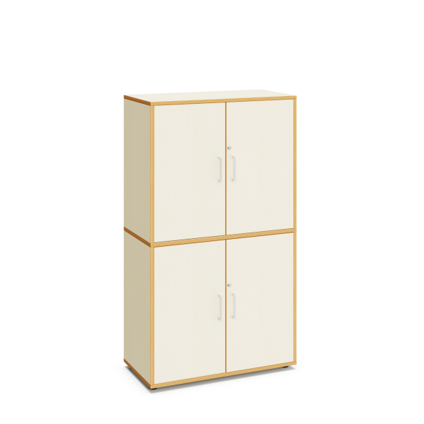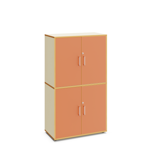 Flügeltürenschrank aus Holz mit 4 abschließbaren Türen, 2 Einlegeböden und 1 Fachboden. 160 cm hoch.
