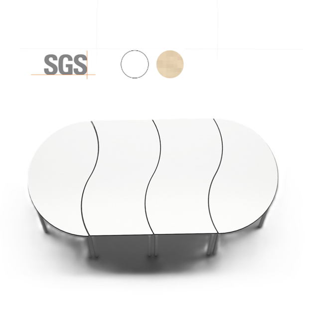 Höhenverstellbarer Wellentisch. Mit Metallgestell und MDF-Platte. Die geschwungene Form inspiriert und regt die Kreativität an. Lässt sich erweitern mit Schülertisch Ying.