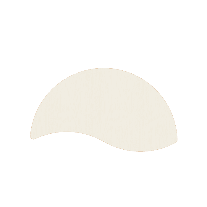 Halbrundtisch in verschiedenen Größen. Mit Metallgestell und melaminharzbeschichteter Spanplatte. Die geschwungene Form inspiriert und regt die Kreativität an. Mit einem weiteren Halbrundtisch lässt sich ein runder Tisch stellen. Lässt sich auch mit dem Wellentisch Yang erweitern.